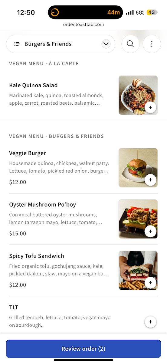 Vegan Menu - Burgers & Friends