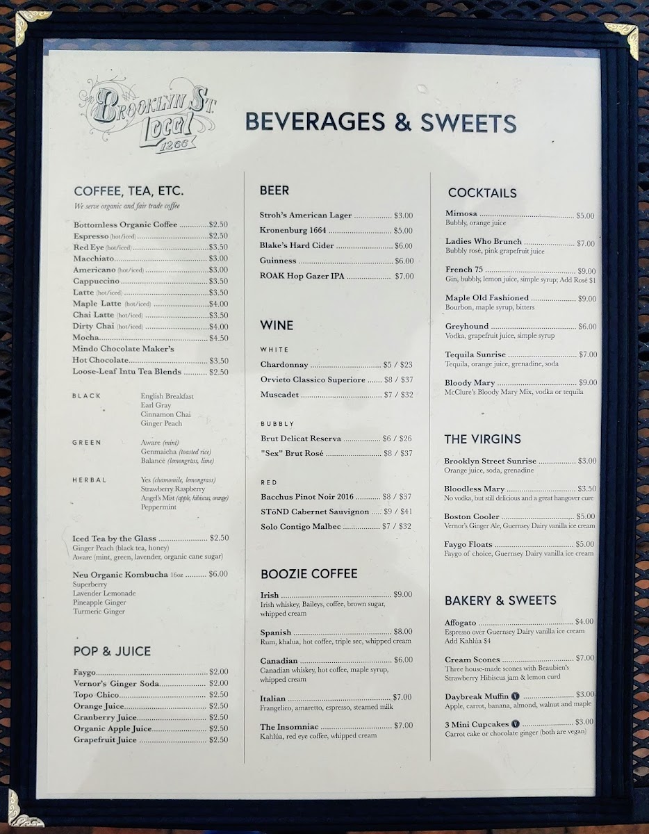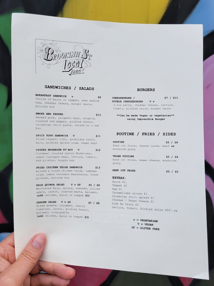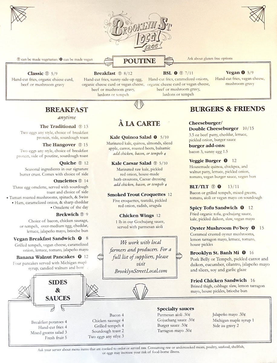The Brooklyn Street Local LLC Menu