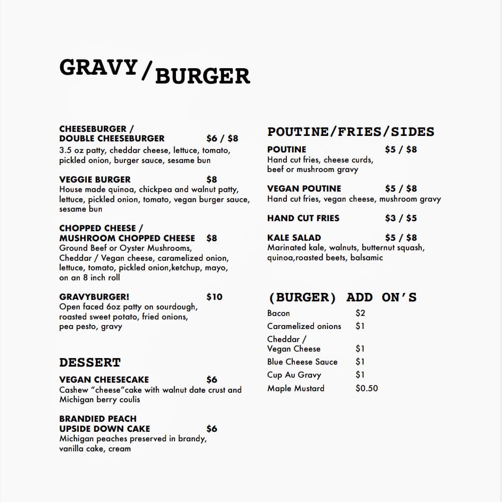 Full Food Menu - Poutine